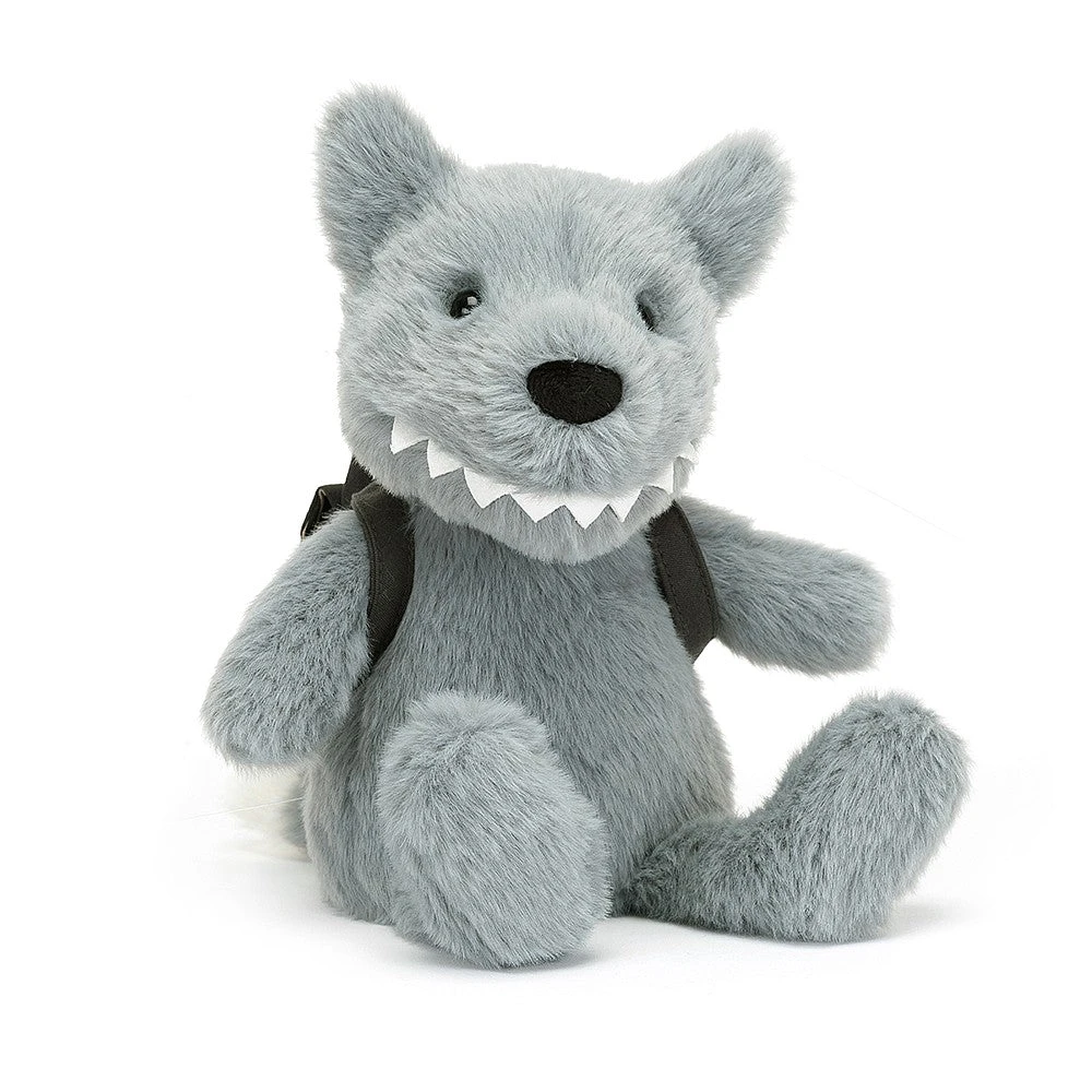 Backpack Wolf is off for a wander, wearing a backpack that looks just like them! Bluey-grey and gorgeously goofy, with perky ears and squishable paws, this cuddly cub is an expert explorer. Don’t be scared by those big suedey teeth – all the better to eat sandwiches with!