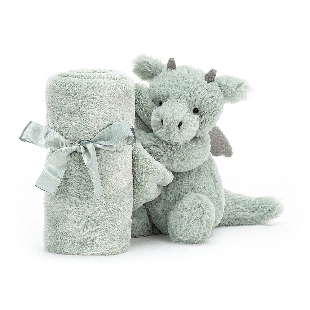 Some dragons like to hoard lots of gold, but this one looks after the Bashful Dragon Soother! This flapping friend has snuggly fur, a squashy tail and suedey horns and wings. Fly up to the clouds with a dapper dragon for cosy, mossy naptimes.