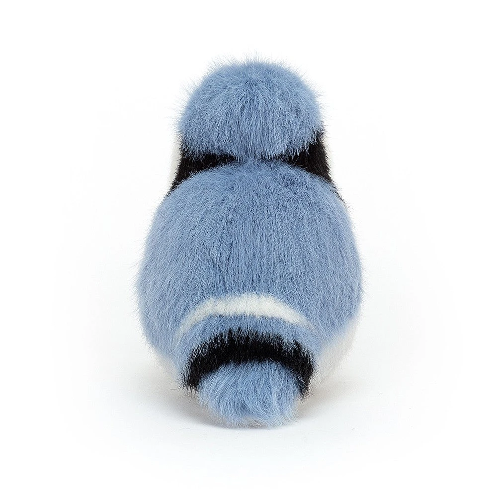 Birdling Blue Jay is a dashing chick with bright, curious eyes. Always on the lookout for bugs and fruits to snaffle with that blue suedey beak, this silky-soft forager makes a great pocket pet. Check out that snowy face, with bold black markings and plumy crest!