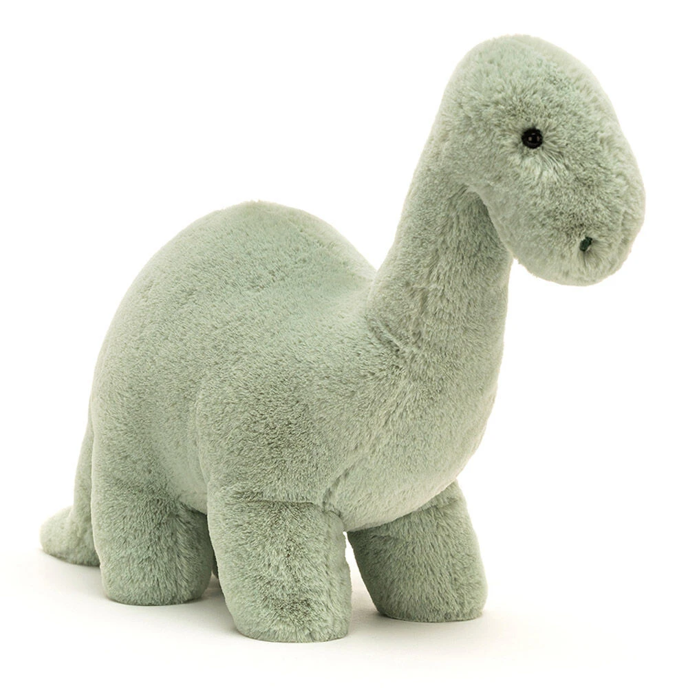 Meet Fossilly Brontosaurus, a very friendly Dino who loves to sing with his bronto-chorus buddies, whilst he roams the prehistoric jungles, finding the most delicious ferns to eat!