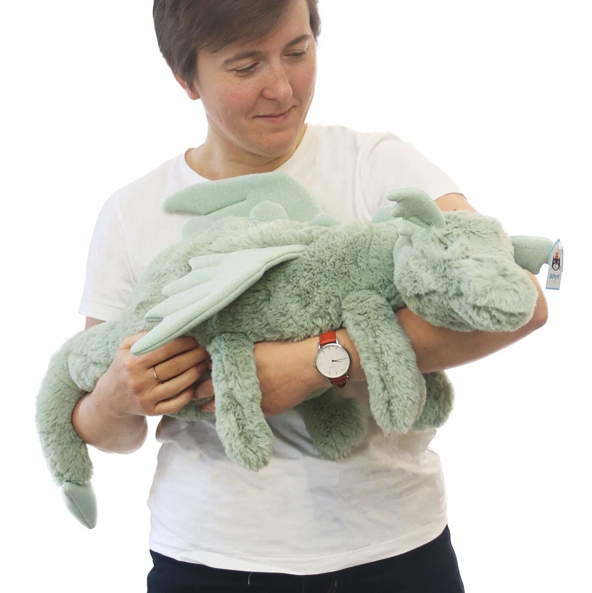 With his sage coloured fur and adorable dragon wings, this big softy loves to lounge around on a cold winters day which makes him the perfect companion for snuggling up to in the evening and keeping warm and cosy.