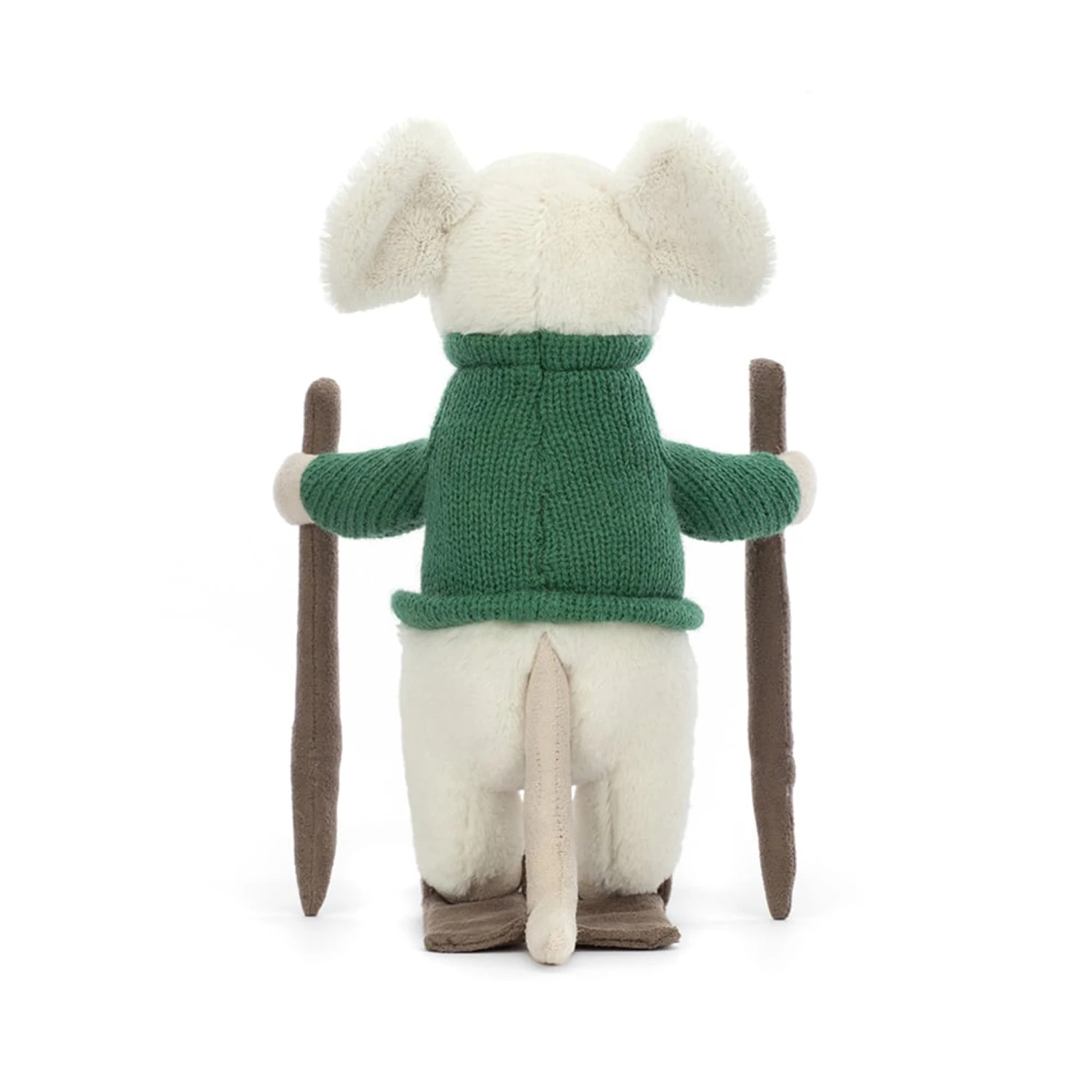 Merry Mouse Skiing from Jellycat is perfectly at home on the slopes, with excellent posture, ice-cream fur and mountains of style! With slate grey suedette skis, straps and poles, and a deep green knitted jumper, this fearless mouse is heading into the slalom! Makes a great gift for babies, toddlers and kids. Suitable from birth. Hand wash only; do not tumble dry, dry clean or iron. Not recommended to clean in a washing machine. Merry Mouse Skiing measures 8 inches tall x 5 inches wide.