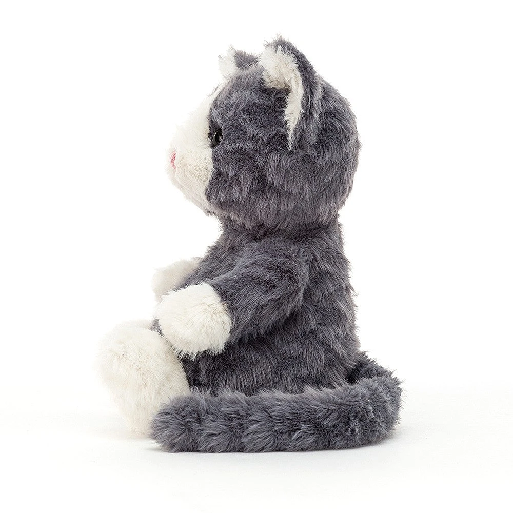 Cheeky and chubby, Mitten Kitten Storm is beautifully snuggly in scruffle slate fur. With chunky cream paws, tufty ears, a soft, swishy tail and a vanilla snoot, our dreamy kitty likes nothing better than sitting and daydreaming in the sun.
