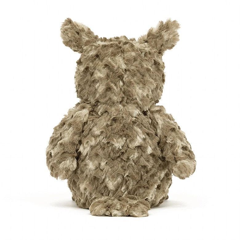 Oberon Owl just woke up from a magical midsummer dream! A coffee-cake cutie with tousled fur, bold brow tufts and a butterscotch tum, Oberon has the finest flappy wings. Our chilled-out owl has suedey cocoa claws and beak and matching sleepy eyelids!
