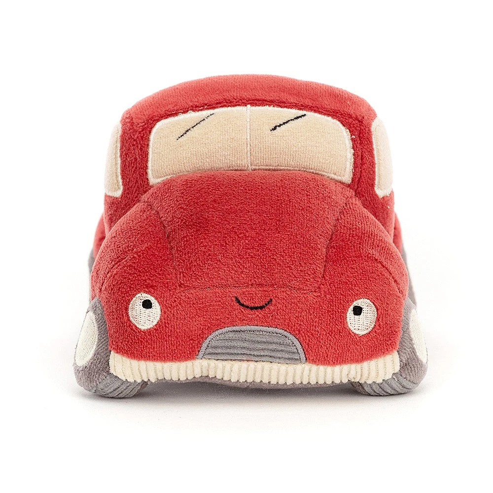 Wizzi Truck is cool in red cord, and ready to make deliveries! This perky pickup has headlight eyes, a groovy grey bumper and needlecord tyres. Drive carefully, or you’ll hear this sound: Toot toot! Vroom! Hey – Wizzi’s away!